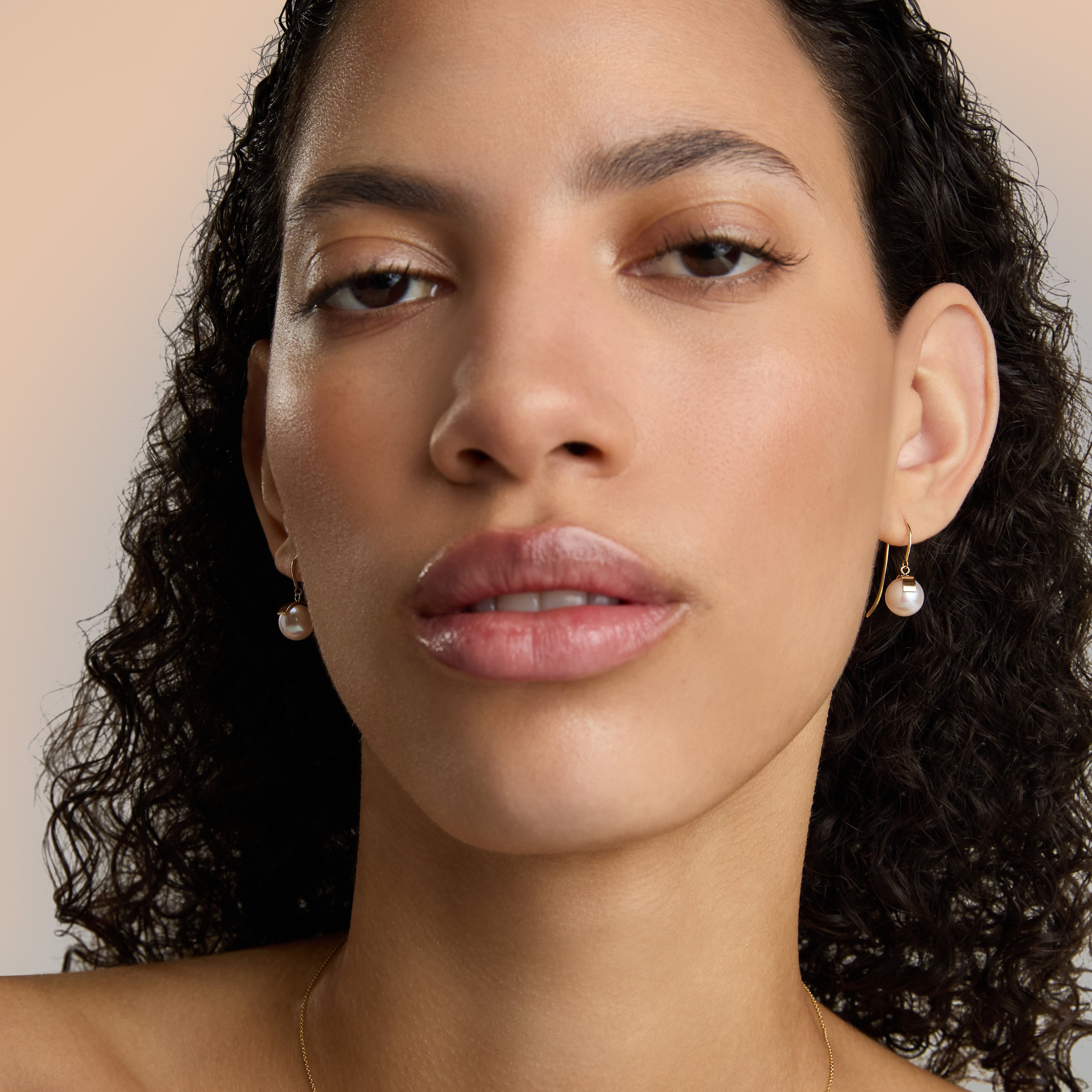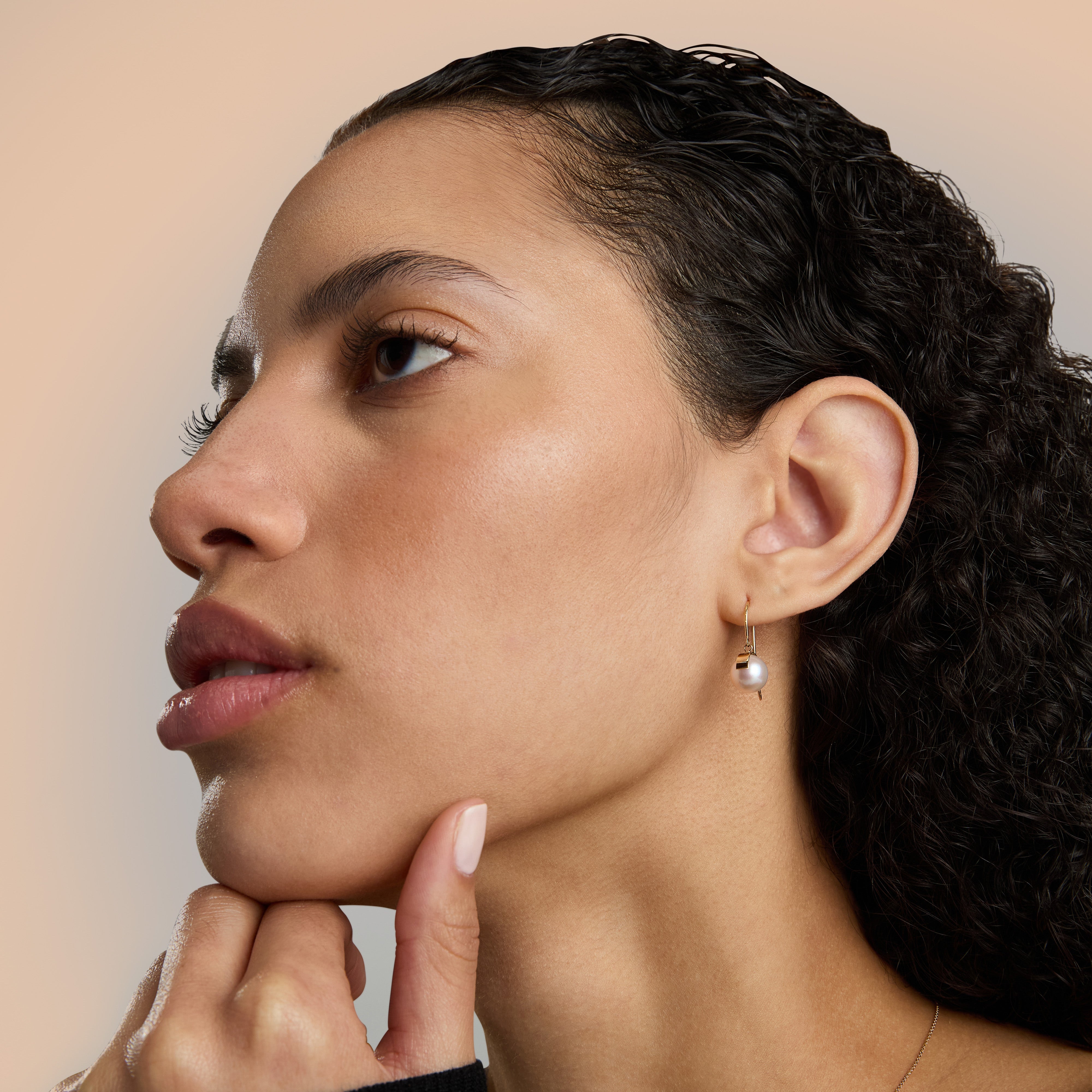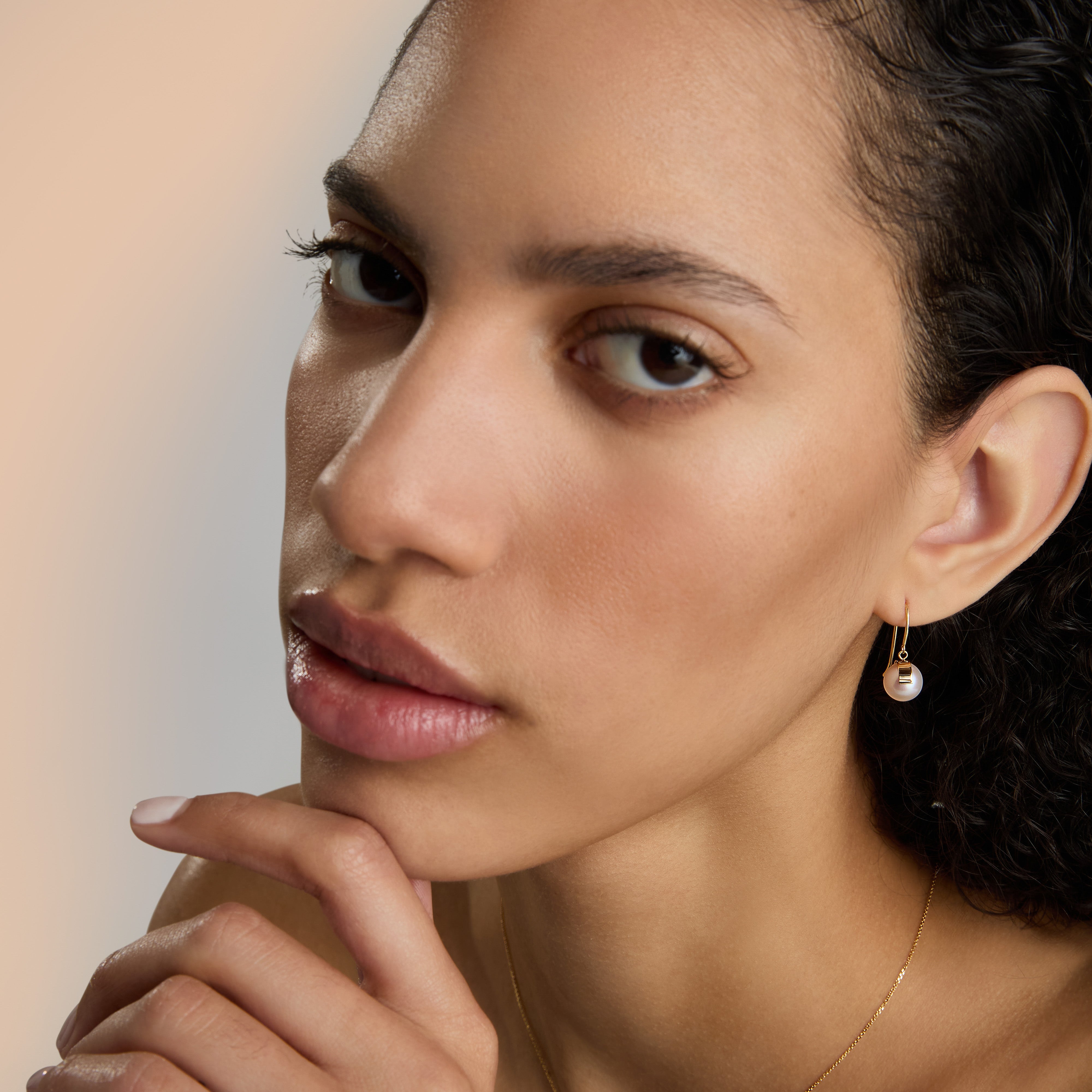 Anchor your ear party with these updated classics or wear them solo for that perfect finishing touch. Here two of our favorite things (luminescent round pearls and solid gold) have been interpreted in tribute to Finnish architect Alvar Aalto, a mid-century modernist icon, whose clean, yet organic aesthetic aligns perfectly with these elegant stunners.