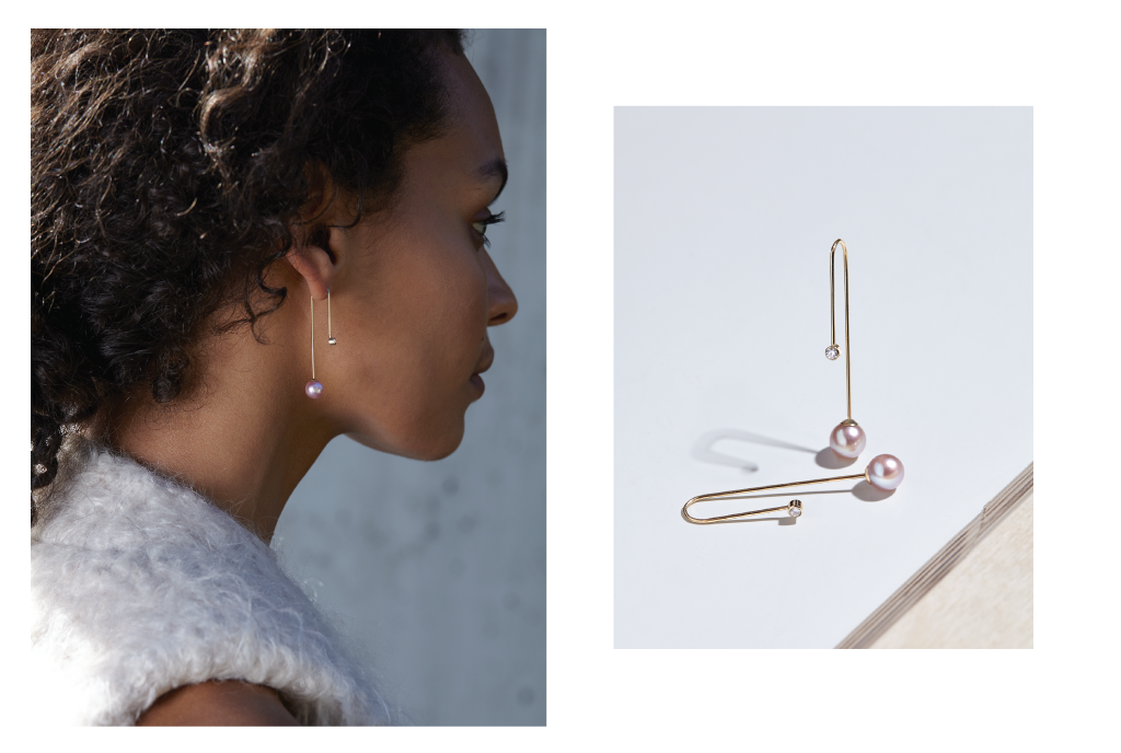 The interplay of precise lines, minimal shapes and delicate details define the LINÉA Collection from White/Space. Thoughtfully hand formed gold balances the soft blush of eye-catching pink pearls, accented with the delicate sparkle of diamond details. This infinitely wearable collection strives for intrigue and longevity through restraint in design. Inspired by the serenity and elegance found in the work of Mid-century Modernist architect Carlo Scarpa, LINÉA is the 3rd chapter in our constant pursuit to bring ease and artful luxury to modern fine jewelry.